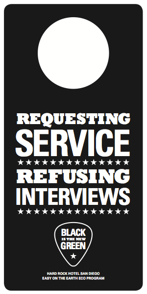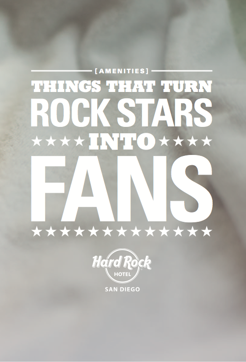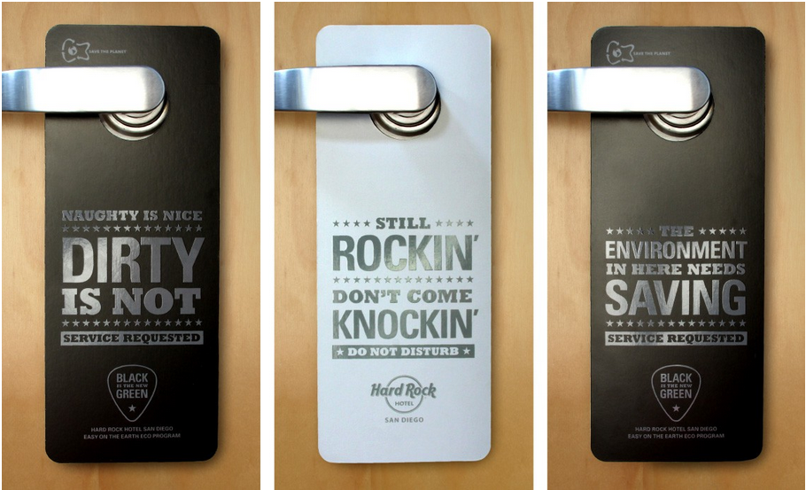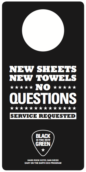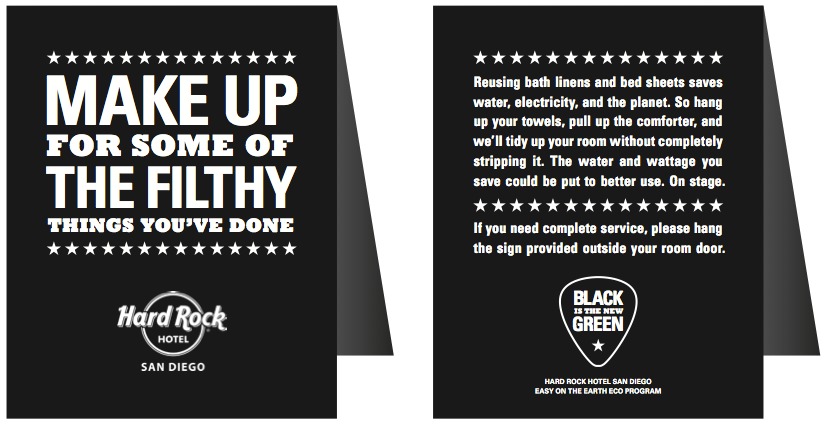 Created a Hard Rock worthy version of the save water and energy programs prevalent at so many hotels. Gold in Graphis.